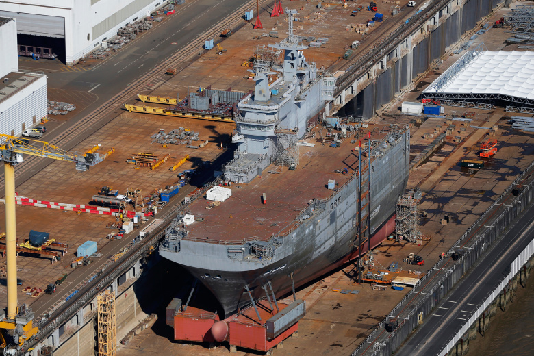 Вертолетоносец класса «Мистраль» на верфи в Сен-Назер (Франция).