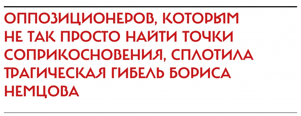 Многие из тех, с кем поговорил NT, подчеркивали: оппозиционеров сплотила трагическая гибель Бориса Немцова. Новый союз — серьезная заявка на выход в легальное политическое поле, на переход от игр в политику к политике. Игры закончились, когда один из самых известных российских оппозиционеров был убит в нескольких сотнях метров от Кремля. Об этом на брифинге сказал и Алексей Навальный: «После смерти Бориса все ускорилось».