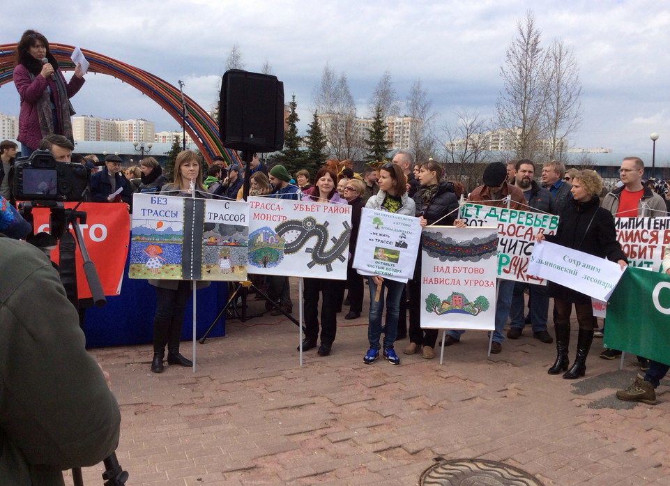 В воскресенье, 26 апреля, жители Южного Бутова провели митинг против строительства высокоскоростной дорожной магистрали, которая в ближайшие годы должна будет пройти через район.