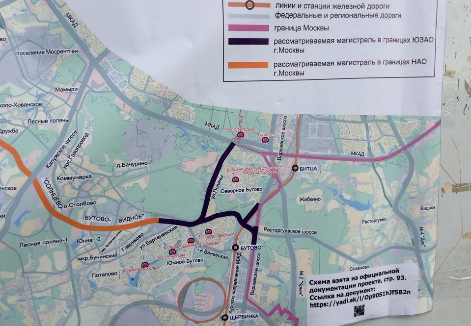 По плану Комитета по архитектуре и градостроительству города Москвы, опубликованному на официальном сайте проекта дороги «Солнцево-Бутово-Видное», заметно, что трасса на некоторых участках будет прилегать к домам на расстоянии около 60 метров. Кроме того, как объяснили активисты, решение о строительстве трассы означает массированную вырубку Бутовского лесопарка, а из-за того, что в проекте не предусмотрена реконструкция выездов на МКАД, участок трассы будет причиной новых автомобильных пробок.