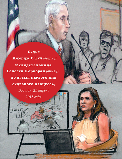 Селести Коркоран дала показания первой из потерпевших. Присяжным придется выслушать рассказ о человеческих страданиях еще не раз. И потом они должны будут решить — готовы ли они подарить Джохару Царнаеву жизнь, который вместе с братом отнял ее у ни в чем не повинных людей.