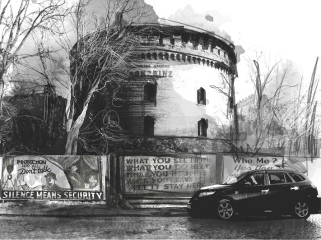 «Мы расписывали забор в тот момент, когда к нам подошла женщина, которая почему-то выгуливала собаку на территории памятника федерального значения, она стала спрашивать, почему нарисована свастика на заборе, — рассказала Зина Шершун. — Мы ответили, что эта свастика появилась давно, ее происхождение неизвестно, к тому же, кто-то потом ее зачеркнул. А сейчас мы делаем художественную работу — расписываем граффити забор и используем все те рисунки, которые были нанесены на него неизвестными людьми до этого. Женщина стала давать рекомендации, как нам лучше закрасить забор, я попросила ее дать нам спокойно закончить работу и пригласила на завтрашнее открытие выставки. Буквально спустя две минуты после этого к нам подъехал отряд полиции, они записали все данные и передали их в участок, остановили нашу работу, теперь мы ждём участкового и не знаем, как будут развиваться события».