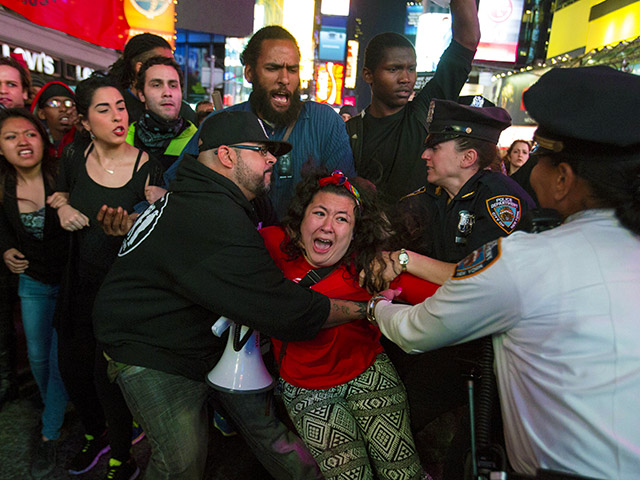 Сотни демонстрантов собрались на Юнион-сквер на Манхэттене, однако к половине восьмого вечера марш превратился в массовые беспорядки: участники акции разбились на несколько групп и рассыпались по улицам, скандируя лозунги и вступая в перепалки с полицией.