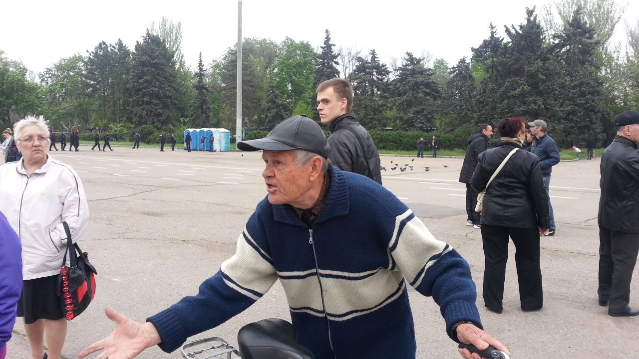 И потом еще выпустили белых голубей. Люди проводили их аплодисментами. Когда мы с оператором уже собирались уходить, к нам подскочил местный житель с велосипедом и попросил разрешения высказать все накопившиеся у него к властям претензии. Мы разрешили.