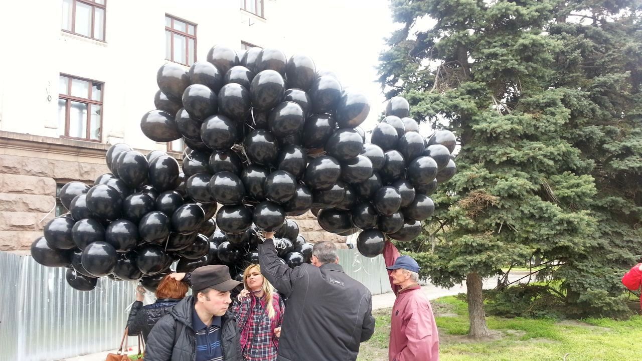 В самом начале мероприятия на площадь вошли люди со связками черных шаров в руках.