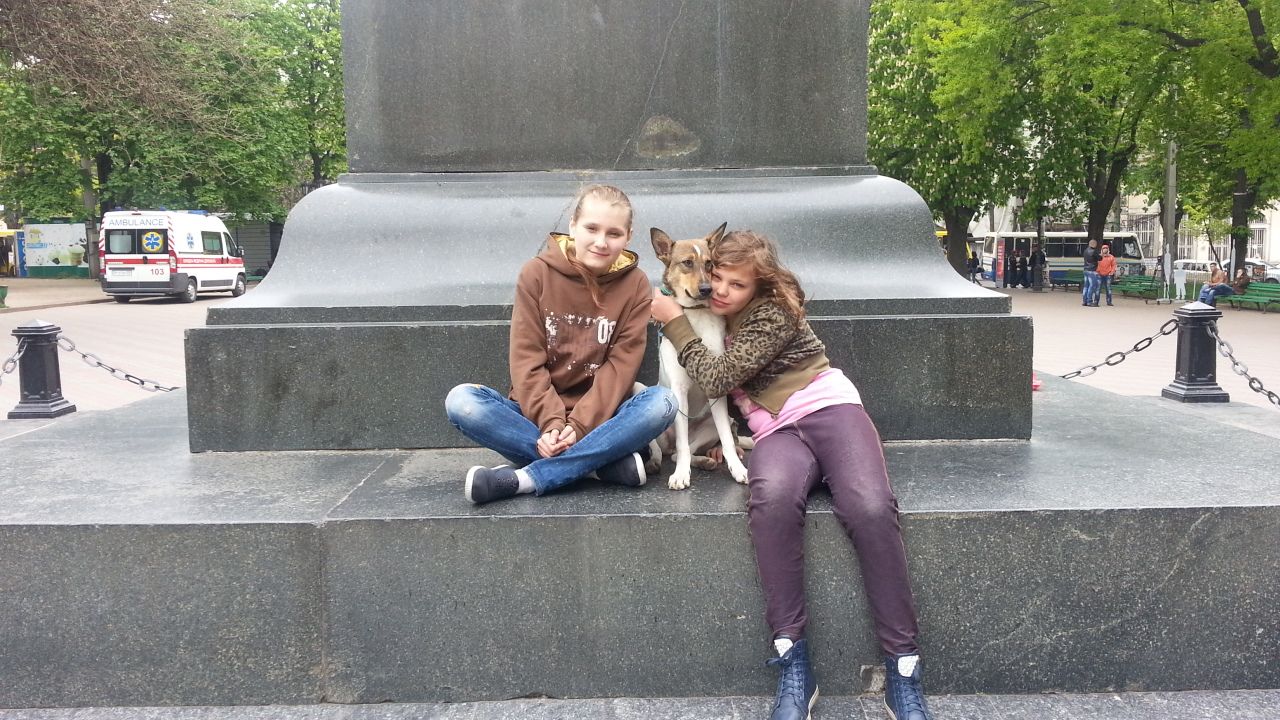 У памятника Воронцову, стоящему в центре площади, тоже возились малышки с собакой.
