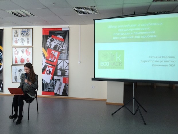 В первый день участники хакатона вдохновились вступительной лекцией Татьяны Каргиной с обзором российских и зарубежных краудсорсинговых платформ и приложений для решения эко-проблем (ссылки к презентации), а также поучаствовали в мастер-классах и ток-шоу «Иркутск эко — логичный?».