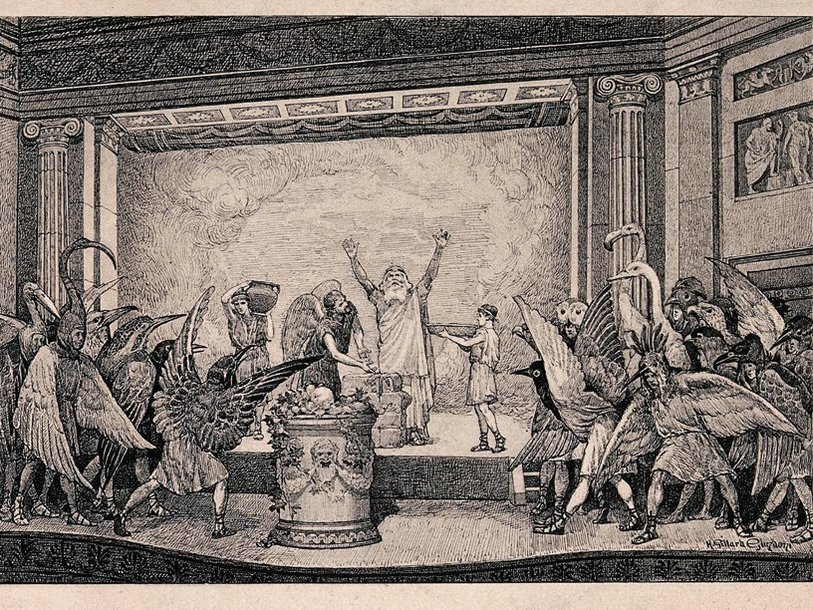 Но что значила скандальная сцена для самого Аристофана, греческого драматурга V в. до н.э., и для афинской публики того времени? Ничего неизвестно о том, чтобы зрители оскорбились из-за пародии на представителя религиозного культа и на главный ритуал древнегреческой религии – жертвоприношение животного богам. Наоборот, «Птицы» получили в 414 году до н.э. второй приз в драматическом конкурсе.