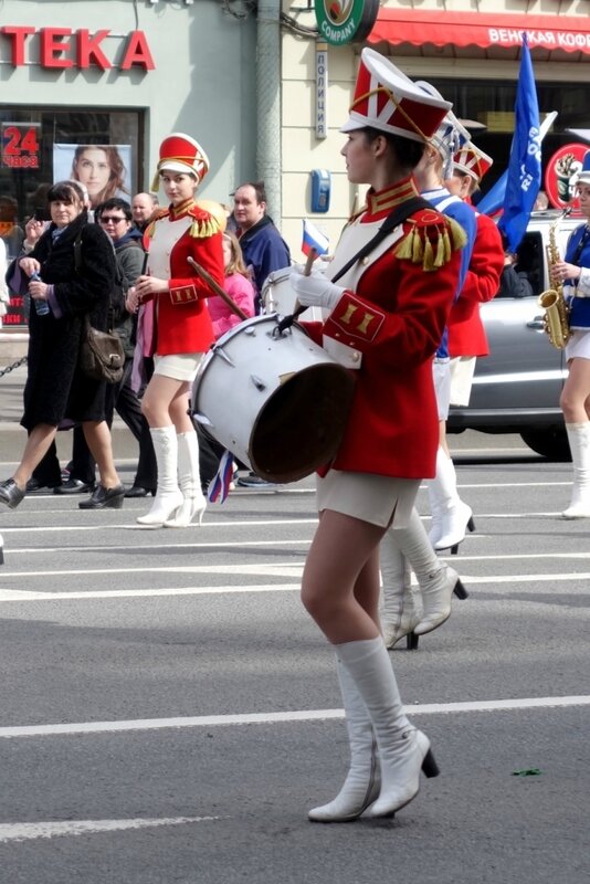Сексапильные девушки - это приманка при продаже не только автомобилей и прочих товаров, но и политических организаций. Сугубо маркетинговый ход перекочевал в политику. И вот во главе каждой большой колонны любой ориентации идут длинноногие девушки-барабанщицы или реже трубачи. Посмотрел на длинные на ноги, а там, вероятно, есть шанс, что заметишь и партийные флаги. Нормальная логика политики общества потребления. Смотришь на чередование ножек и флагов и понимаешь, что все это атрибуты обычного карнавала.
