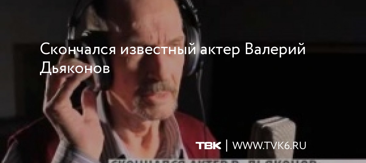 Сегодня на 73-м году жизни скончался известный актер Красноярского драматического театра имени Пушкина Валерий Дьяконов. Как сообщили в самом театре, причиной стала тяжёлая продолжительная болезнь. Долгой была история совместной работы актёра и телекомпании ТВК. Многие годы именно голос Валерия Аркадьевича был голосом нашего канала. И так получилось, что одной из последних его работ и появлений на экране стало участие в совместном проекте телекомпании ТВК, посвященном 70-летию Победы.