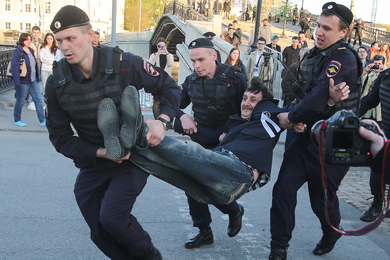 6 мая полиция задержала 65 человек, учавствовавших в акции на Болотной площади в Москве, приуроченной к третьей годовщине столкновений между полицией и участниками Марша миллионов