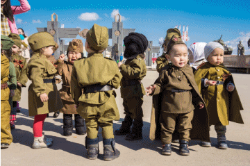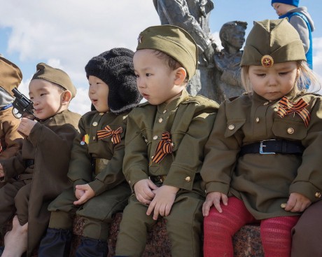 Якутские дети, родившиеся 9 мая 2013 года, готовятся к параду.