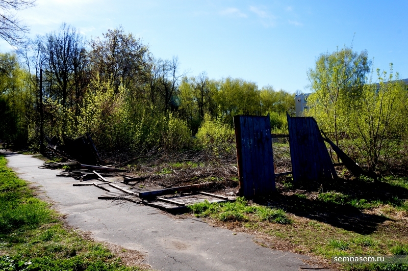 Самая непростая ситуация на участке Центрального парка — прямо за офисом управления федеральной налоговой службы по Марий Эл. Здесь руины какого-то недостроя. Раньше он был огорожен деревянным забором, от которого остались воспоминания. Территория невероятно захламлена, и никакие субботники до нее не добираются. Более того, свою лепту вносят и предприятия общепита, начинающие выливать на заброшенный и потому, очевидно, «ничейный» участок самые натуральные помои.