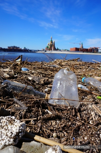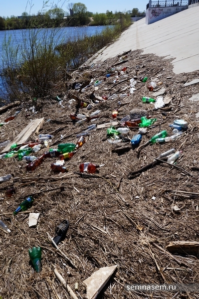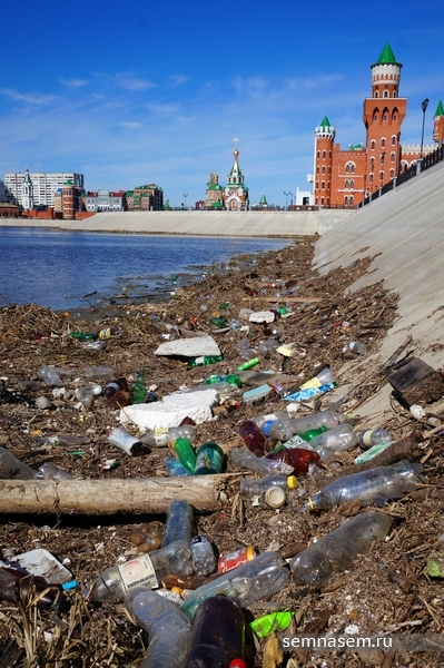 Как всегда, залив у президентской школы выполняет роль мусороотстойника — уровень воды в реке стабилизировался и на сушу вынесло сотни попавших в Кокшагу пластиковых бутылок и прочего хлама. Здесь специализированного субботника по типу прошлогоднего «а-то-перед-Медведевым-стыдно» не планируется: работники коммунальных служб, убирающиеся на набережной, сообщили корреспонденту «7х7», что вскоре соберут весь прибитый к берегу мусор.