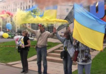 Местом демонстрации стала клумба на месте памятника Феликсу Дзержинскому. Шестеро активистов развернули два больших флага Украины, плакат "З днем народження, Надія!" и зажгли файеры и дымовые шашки.