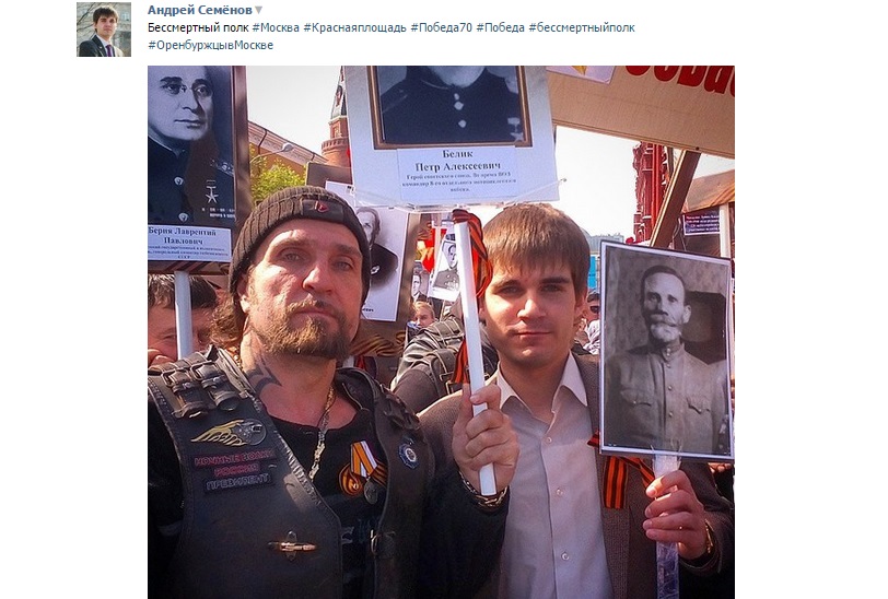 То, что плакат с Берией — не фотошоп, доказывают фотографии, опубликованные на странице «ВКонтакте» молодежного руководителя представительства Оренбургской области при Правительстве РФ Андрея Семенова.