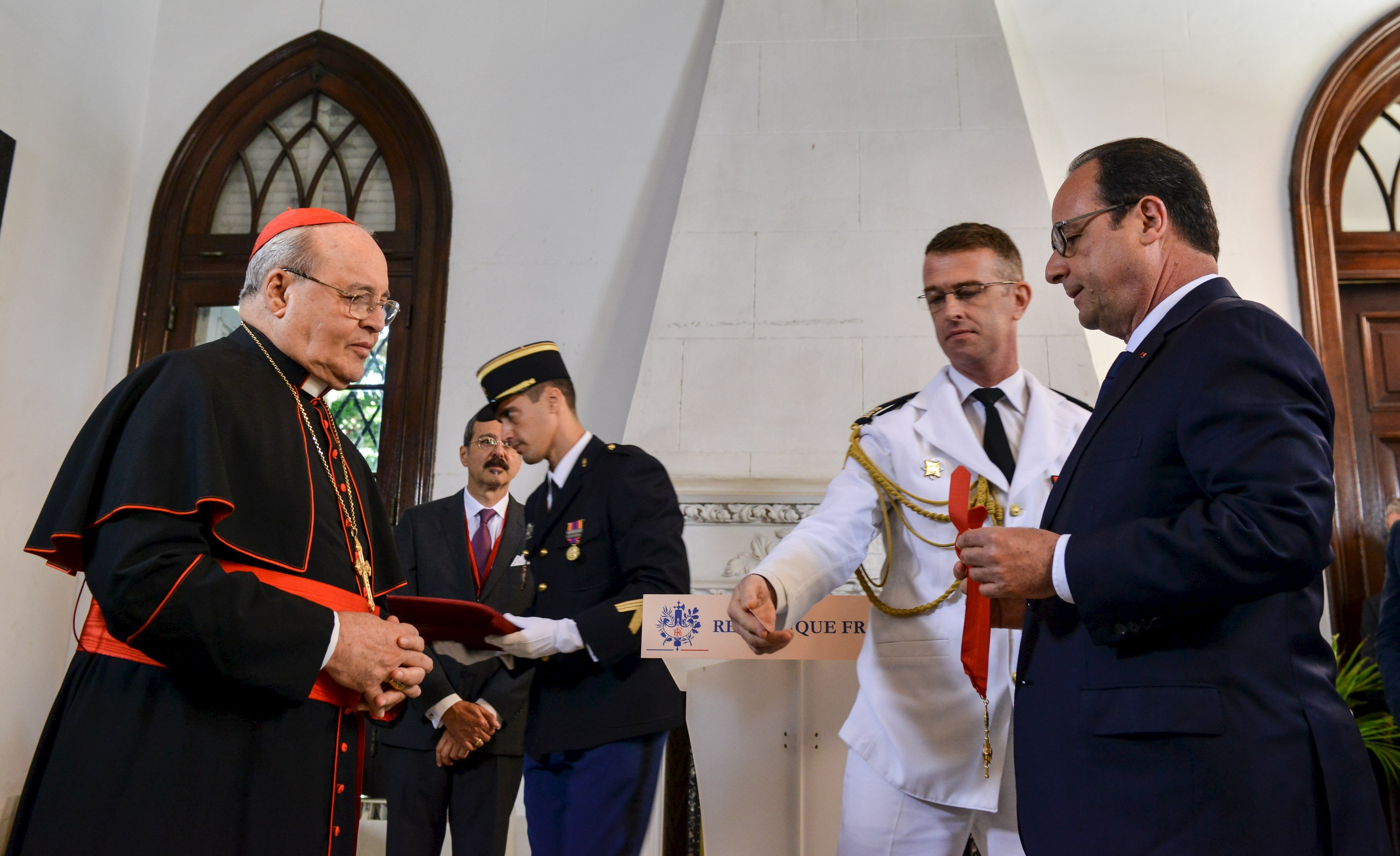 В ходе визита в Гавану Олланд выступил в местном университете и встретился с президентом Кубы Раулем Кастро и его старшим братом Фиделем. Ранее в понедельник Олланд с встретился кардиналом Гаваны Хайме Ортегой-и-Аламино, который содействовал освобождению кубинских политзаключенных, и вручил ему высшую награду Франции – Орден Почетного легиона.