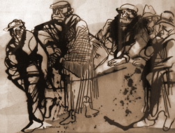 Что ещё художнику надо? Бумага, цветные чернила, гусиное перо и спирт. Вполне достаточно для того, чтобы осознать реальность и надёжно её запечатлеть.
