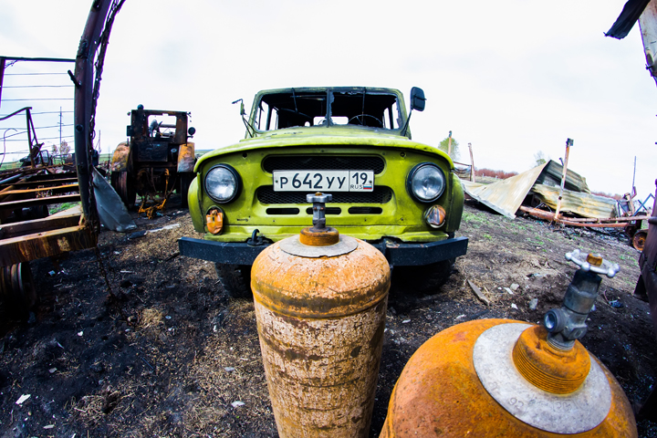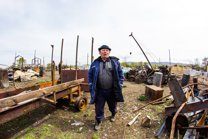 Перед нами груды металла — какие-то механизмы, утратившие навсегда жизнь, замершие остовы автомобилей. Рядом с участком — вагончик, в нем, как говорят Филипповы, они теперь и живут.