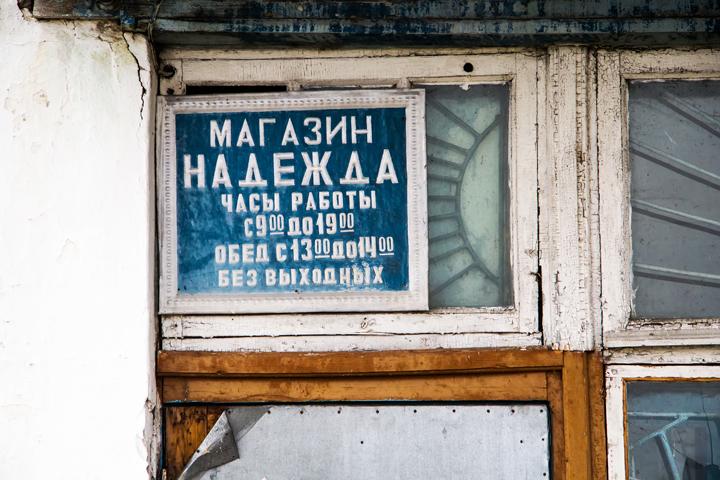 В Новокурске на пустой дороге нас обгоняет лишь трактор с лесоматериалами. Строиться тут придется многим. Вдоль дороги — земельные участки, разделенные табличками с именами людей и номерами телефонов, части обгоревших стен, черные деревья без листвы и магазин «Надежда», одиноко стоящий и закрытый.
