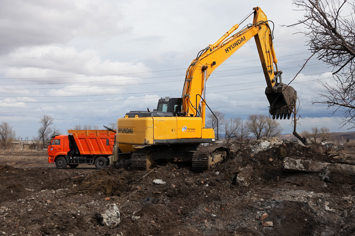 На вывоз сгоревшего имущества компания направила тяжелый 30-тонный бульдозер, экскаватор и три 20-тонных КамАЗа. Машины работали безвозмездно около шести дней, пока в них была потребность.