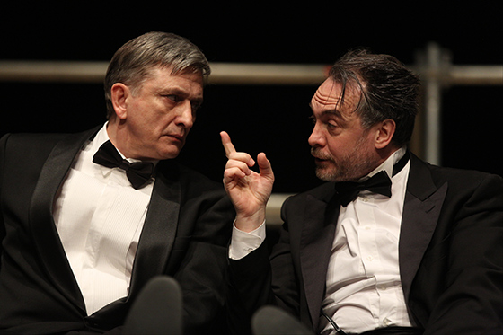 Кстати, если и живо еще «товстоноговское наследие», то его можно найти где-то тут — во всяком случае, ту его часть, что знакома нам по знаменитому трюку Евгения Лебедева со стаканом водки в «Энергичных людях». Но это так — в качестве дижестива.