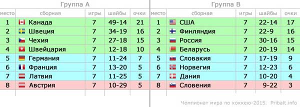 18:21 Игорь: Окончательная таблица в группе. Россия заняла третье место. Финляндия вторая. США - первое место.