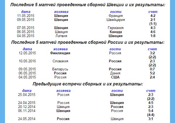 12 мая сборная России проиграла сборной Финляндии со счетом 2:3. В результате российская команда заняла третью позицию в группе В, набрав 15 очков. Сегодня она встретится со сборной Швеции, которая заняла второе место в группе А, набрав 16 очков.