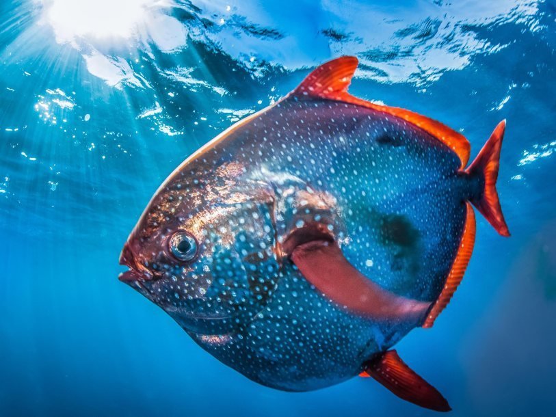 Теплокровной рыбой оказался обыкновенный опах (Lampris guttatus) – вид, впервые описанный еще в 1788 году. Это крупная рыба (длина до 2 метров, вес до 270 килограммов) с красными плавниками и хвостом и сине-стальным телом с белыми пятными и радужными разводами на брюшной стороне. Он широко распространен в водах тропических и умеренных широт, живет в открытом океане на глубине от 50 до 500 метров, при температуре воды 8 – 22° С. Опах – хищник, охотящийся на более мелких рыб, а также на кальмаров.