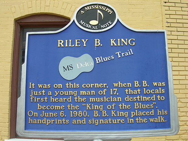 Памятная табличка в городе Индианола. Фото: Flickr/auvet В 1948 году дебютировал на радио KWEM Уэст-Мемфиса. Его появление в эфире не прошло незамеченным. У молодого блюзмена появились первые поклонники. Райли пригласили работать на местной ритм-н-блюзовой радиостанции WDIA в качестве певца и диджея. Там он получил прозвище «Блюзовый Мальчик с Бил Стрит» (Beale Street Blues Boy), позже сократившееся до «B.B.». Там он познакомился с Ти-Боун Уокером, знаменитым блюзовым гитаристом. «Впервые услышав его, я понял, как мне самому нужна электрогитара. Нужна, даже если ради этого придется ее украсть!», — рассказал потом Ти-Боун Уокер.