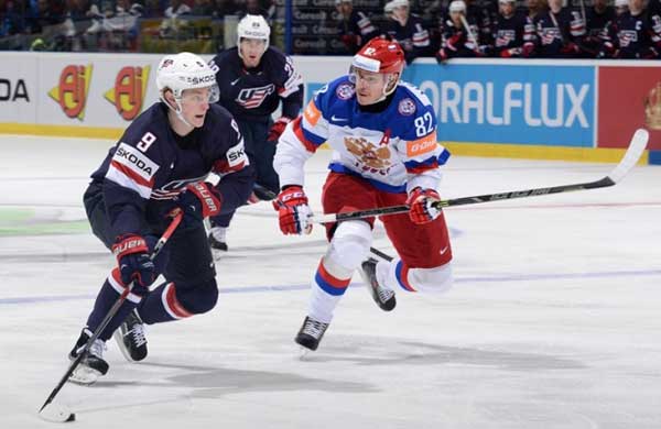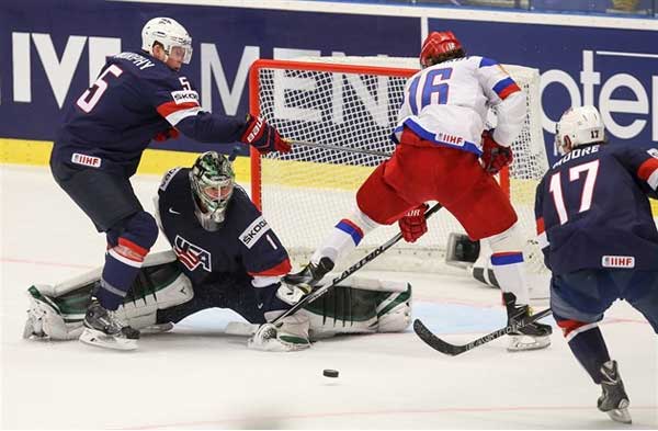 Российская сборная вышла в плей-офф чемпионата с третьего места в группе B, набрав 15 очков. Команда США набрала 17 очков, заняв в группе B первое место. 4 мая команды уже встречались на групповом этапе чемпионата. Тогда США выиграли у России со счетом 4:2.