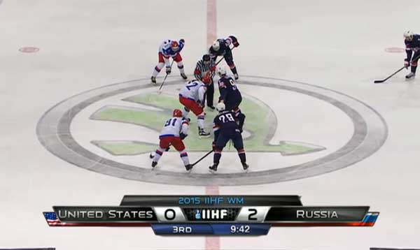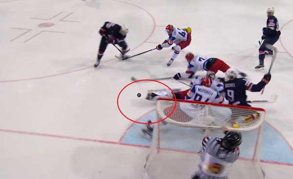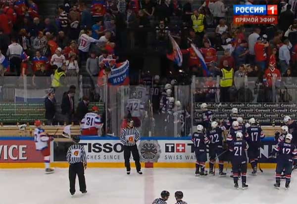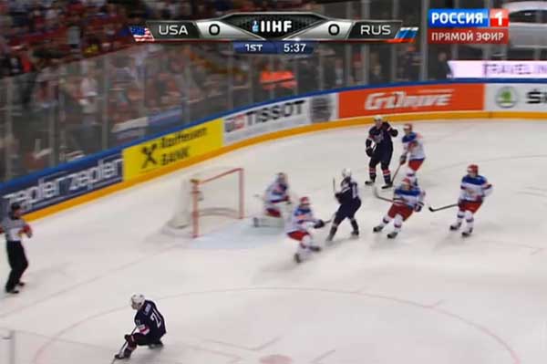 У ворот сборной России 21:19 Василий: Снова сборная США контролирует игру в нашей зоне.