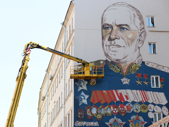 Маршал Жуков - один из самых известных полководцев Великой Отечественной войны - дважды удостаивался ордена "Победа". Первый из них он получил непосредственно за освобождение правобережной Украины. В Москве незадолго до 70-летия Победы на одном из домов на Старом Арбате нарисовали самый большой в мире портрет с его изображением. Площадь граффити превышает 250 квадратных метров.