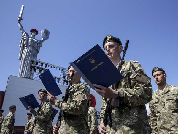 Присяга военнослужащих Украины Фото: dyvys.in Как ни странно, но последняя динамика по поводу Донбасса исходила от "представителя ДНР в контактной группе" Д.Пушилина. 7 мая он сообщал: "Свершился прорыв, которого давно ждали, наверное, с момента подписания комплекса мер 12 февраля". Ну вот, десять дней прошло, а подробностей прорыва так и нет.