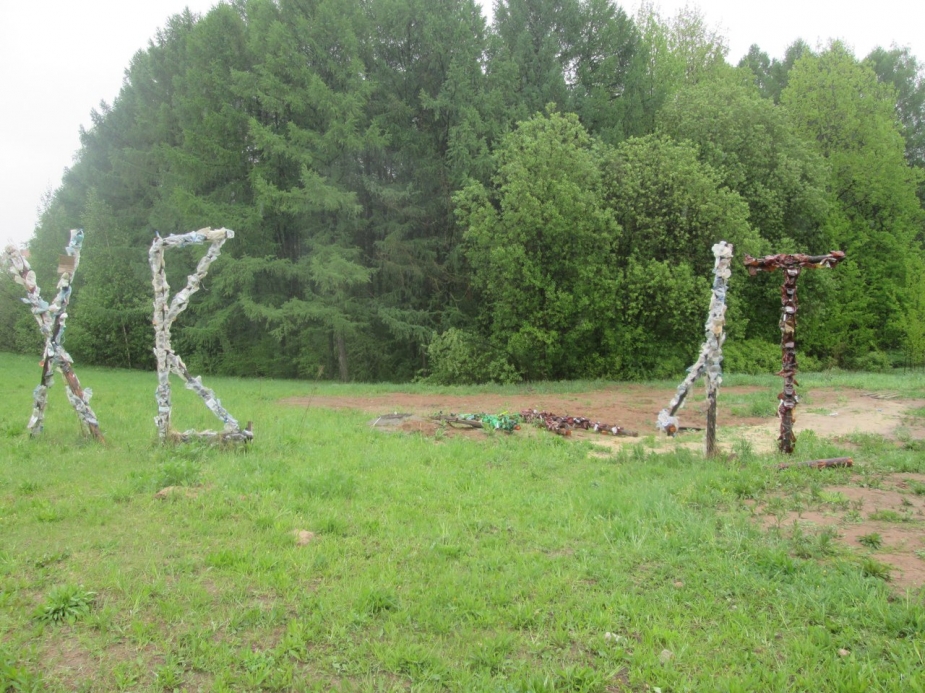 Знаменитая надпись, убеждающая посетителей Сосновой рощи не оставлять после посещения лесопарка мусор: пакеты, бутылки и прочее, появилась примерно два года назад. Трехметровые буквы — каркас из бревен, «обернутый» в собранные экоактивистами во время субботников пластиковые бутылки, составлявшие надпись «Хватит», стали своего рода местной достопримечательностью.