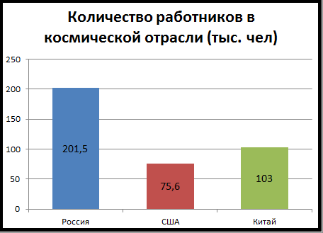 Теперь немного об эффективности космической отрасли, есть данные по численности работников в космической отрасли: