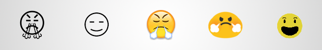 Другой пример — «лицо с видом триумфатора» («Face With Look Of Triumph»). Из-за пара, вырывающегося из носа, он напоминает злого быка и для многих пользователей символизирует злобу. Раз облачка вводят в заблуждение, от них предлагают избавиться.
