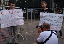 14 августа 2013 года Алексеева допросили в СКР по этому делу. Во время допроса товарищи Алексеева по ЛГБТ-движению провели у здания ведомства групповой пикет. Активисты, среди которых был Алексей Давыдов, вышли с плакатами "Стань геем - оскорби Мизулину" и "Вынесем из Госдумы труп Мизулиной бесплатно". Полицейские, находившиеся у входа в СКР, задерживать пикетчиков не стали.