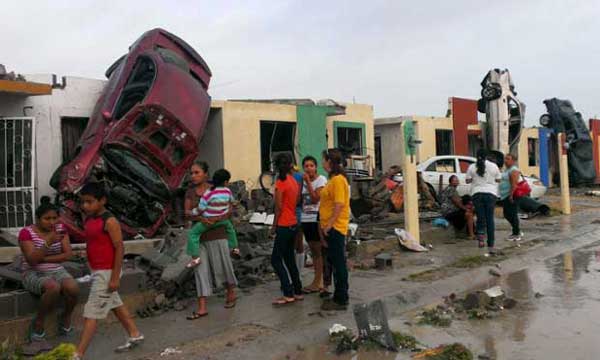 После торнадо в городе Сьюдад-Акунья. Фото: amqueretaro.com Комментарий редактора: За прошедшие выходные и понедельник в Мексике и США в результате стихийных бедствий погибли не менее 17 человек. На мексиканский город Сьюдад-Акунья обрушился торнадо, его жертвами стали 10 взрослых и трое детей. Смерч разрушил город за шесть секунд. Дома превратились в груды хлама, хозяева находили свои машины даже на деревьях, которые ураган не вырвал с корнем. Около 200 человек получили травмы различной степени тяжести. Это был сильнейший торнадо за всю историю метеонаблюдений. Его скорость достигала 300 километров в час. Тот же циклон спровоцировал сильнейшие ливни в соседнем американском штате Техас. Там четыре человека погибли и 12 пропали без вести. По свидетельству очевидцев, потоки воды были такой силы, что некоторые дома уносило с фундамента. Две тысячи техасцев были вынуждены покинуть свои жилища. 24 округа объявлены зоной стихийного бедствия.