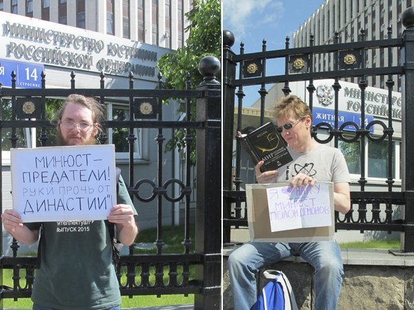 Одиночные пикеты у здания Министерства юстиции РФ (ул. Житная, 14) состоялись сегодня утром в Москве и продолжатся сегодня в течение дня и завтра. Ученые и учителя, авторы и читатели научно-популярных книг, протестуют против вчерашнего решения Минюста занести благотворительный Фонд «Династия» в реестр «иностранных агентов». Об этом сообщает корреспондент «Полит.ру».