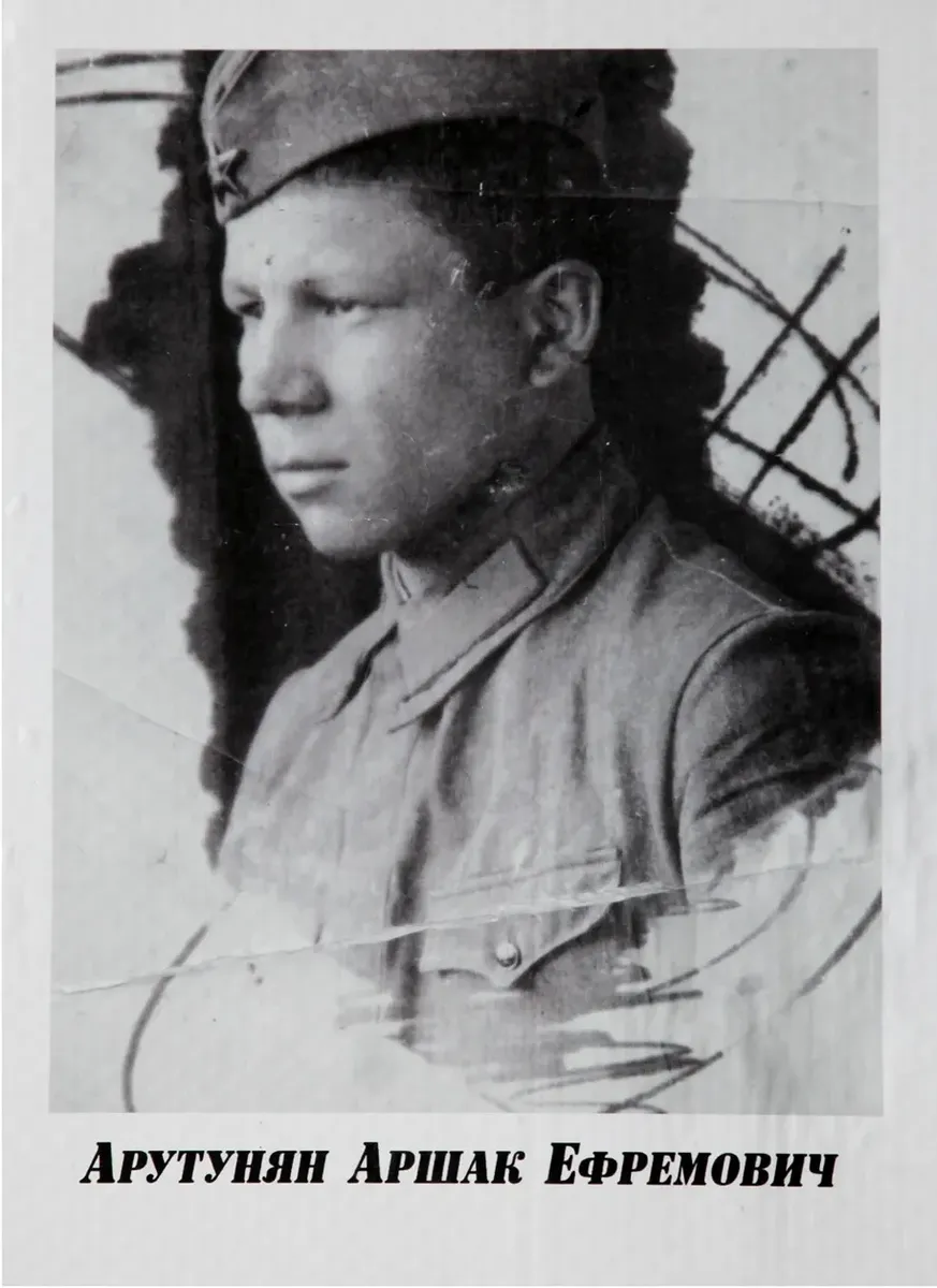 Аршака Ефремовича Арутюняна я нашел в «Бессмертном полку» Ставрополя. В 1941-м, в возрасте тридцати лет, он окончил горный институт, имел бронь, ушел добровольцем, ранен под Керчью, второй раз ранен на Северном Кавказе, отправлен в Баку для формирования зенитного полка. При испытании орудия произошел взрыв, Аршак Арутюнян получил смертельное ранение в голову.