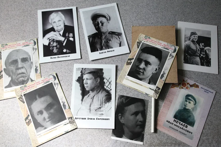 Людмила Николаевна Любомудрова, пенсионерка, активный человек, 10 мая пришла на Немцов мост, чтобы вместе с другими добровольцами в очередной раз навести чистоту и порядок на народном мемориале. Когда она с охапкой увядших цветов сошла с моста, то увидела девять плакатов с фотографиями. Тут, у моста, их оставили участники шествия «Бессмертного полка», проходившего накануне.