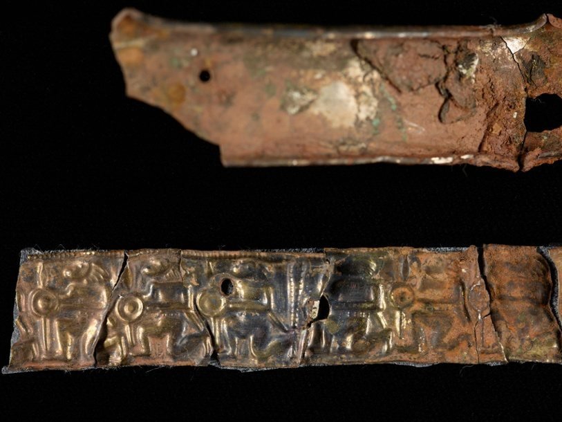 В Великобритании ученые завершают реставрацию уникального шлема VI века, найденного в составе так называемого Стаффордширского клада. Роскошный шлем был покрыт серебряными полосами с чеканкой, изображавшей воинов и животных. Также имели причудливо украшенные золотые пластины, которые закрывали уши. Все это попало в руки археологов в виде более 1500 фрагментов, некоторые из которых были размером не больше ногтя.