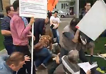 Пикетчиков "Солидарности" облили зеленкой и фекалиями