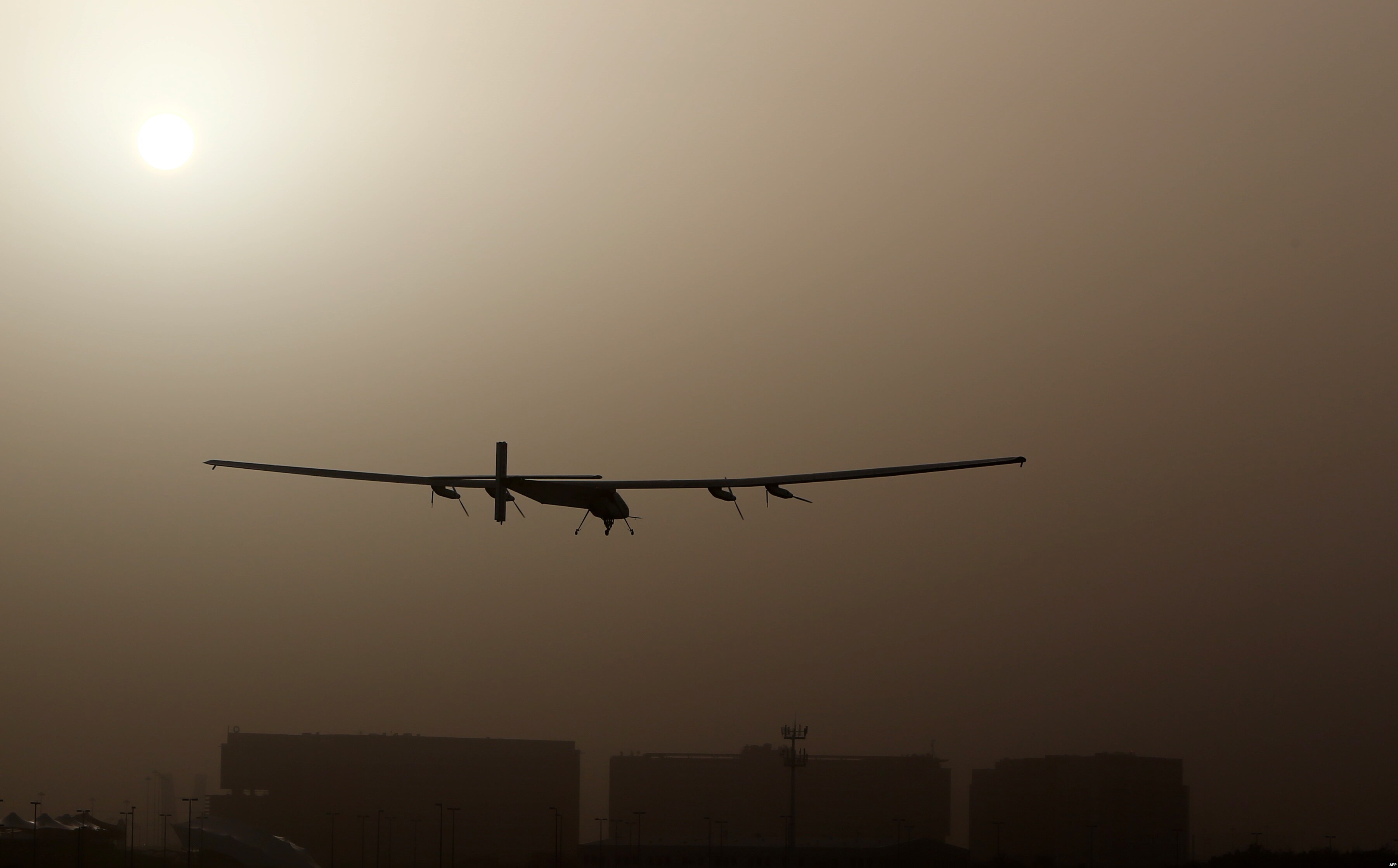 Это очередной этап кругосветного путешествия на самолете с двигателем на солнечных батареях