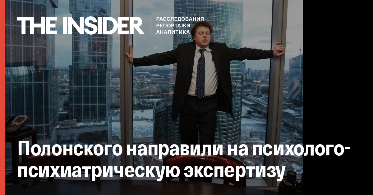 «Сегодня господин Полонский направлен на амбулаторно комплексную психолого-психиатрическую судебную экспертизу о его вменяемости, а также наличии привязанностей, требующих принудительного медицинского лечения. Производство экспертизы проводит Центр психиатрии и наркологии им. В.П. Сербского», - сообщила Алексеева.