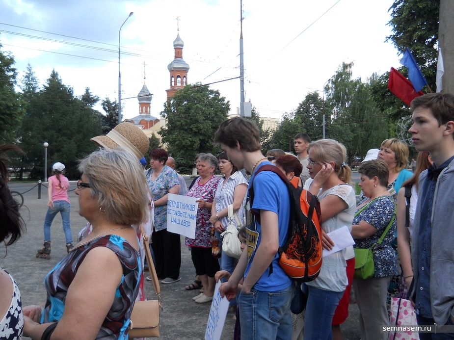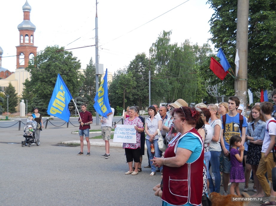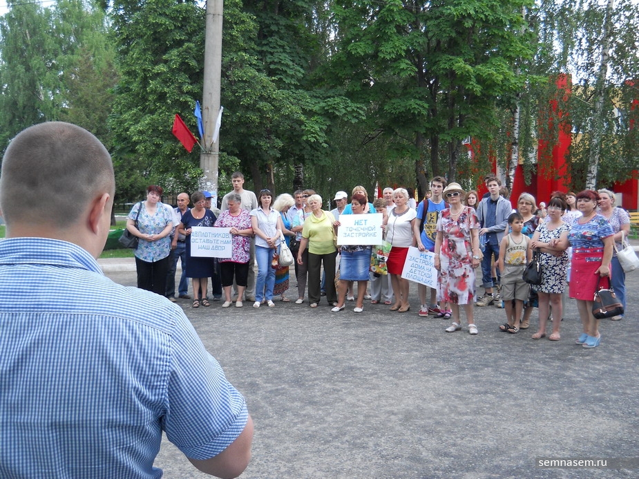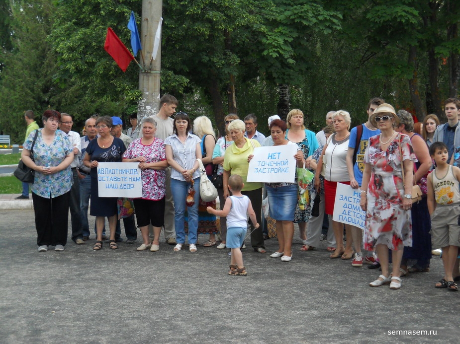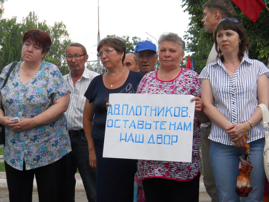 На митинге присутствовали жители двора на ул. Терешковой, отстоявшие зимой право на внутреннюю территорию, исключающее запланированное строительство многоквартирного дома. По словам членов инициативной группы, после того, как общим голосованием жителей в присутствии руководства района и поселка было принято решение о недопустимости строительства в их дворе, вопрос о дальнейших шагах по закреплению за собственниками их права на территорию подвис в комитете по управлению муниципальным имуществом Медведевского района. В КУМИ зимой поменялся руководитель и, по мнению жителей, вероятно, новый начальник еще не вошел в курс дел.