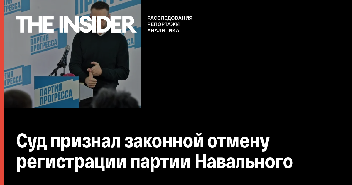 Замоскворецкий суд Москвы признал законными действия Минюста, лишившего государственной регистрации «Партию прогресса» Алексея Навального, сообщает «Интерфакс» со ссылкой на постановление судьи Нелли Рубцовой, оглашенное после рассмотрения заявления представителя партии Дмитрия Крайнева.