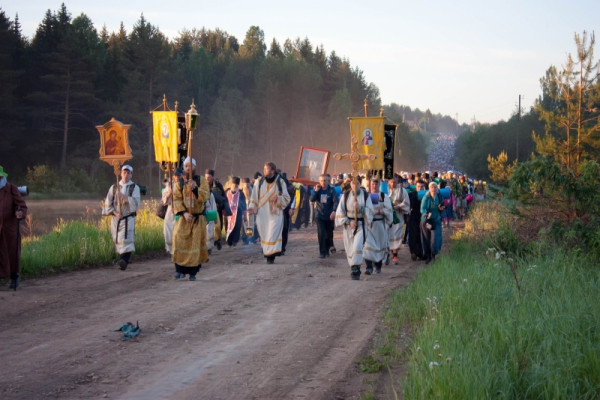 В первый день паломники дошли до села Бобино. Второй день завершился в Монастырском. И, наконец, в пятницу Крестный ход придёт в село Великорецкое. Затем - дорога обратно. Всего - 150 километров.