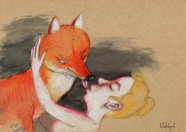 Лиса явилась Пивоварову еще в военном детстве, преследуя сани, в которых он ехал с матерью. Постепенно прельстительно-огненный, коварный зверь стал «образом России вообще», слившись с представлением о невесте-демоне восточной мифологии. Там лису-суккуба, превращающуюся в девушку, чей поцелуй сулит одни лишь неприятности, очень по-русски кличут «хули-цзин». Прозрения художника подтвердила «Священная книга оборотня» Виктора Пелевина, появившаяся практически одновременно с графическим альбомом Пивоварова «Лисы и праздники». Он посвящен несуществующей народности Еврейской автономной области. «Лисомилы», появившиеся в морозных полях в результате сталинских этнических экспериментов, отправляют культ «святых лис», отмечают собственные памятные даты, имеют свои сакральные тексты вроде «Сутры страхов и сомнений» Оная, подобная мегиле, развернута на подиуме по центру главного зала.